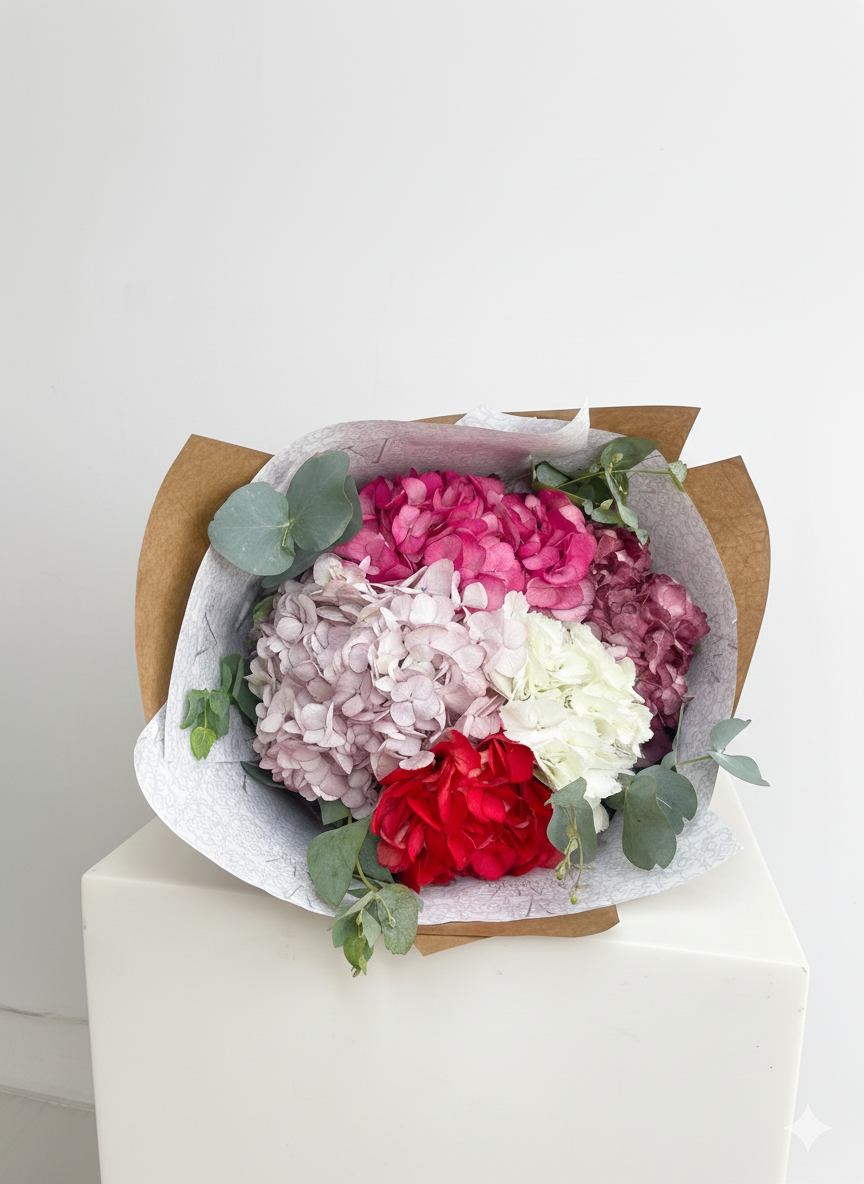 BOUQUET ORGANIZADO CON PAPEL KRAFT Y PAPEL VAEZ BRANDEADO CON LA MARCA: